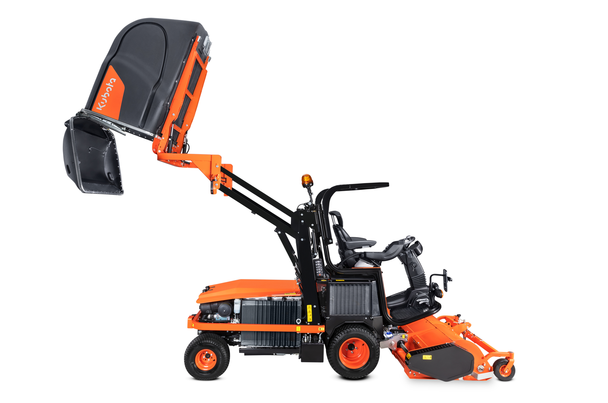 Professioneller Frontsichelmäher mit zentraler Absaugung und integrierter Absaugung.