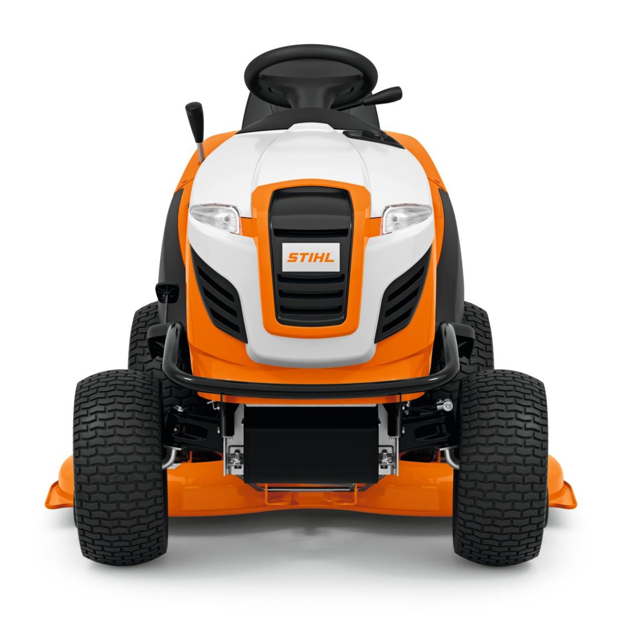 Mit dem STIHL Aufsitzmäher RT 6127 ZL arbeiten Sie kraftvoll und präzise auf umfangreichen Rasenflächen. Selbst unter erschwerten Arbeitsbedingungen garantieren der Fahrkomfort und die Bedienelemente des Rasentraktors, dass es für Sie zeitsparend und kräfteschonend bleibt. Für eine konstante Schnittqualität sorgen dabei die sehr hohe Schnittbreite und das Synchronmähwerk sowie die einfache Schnitthöhenverstellung über das ergonomisch gestaltete Cockpit. Dank des informativen LCD-Displays haben Sie alle wichtigen Funktionsstände des Aufsitzmähers im Blick, wenn Sie auf Ihrem werkzeugfrei einstellbaren Fahrersitz unterwegs sind. Mit der Tempomatfunktion können Sie Ihre Fahrt kontrolliert und ermüdungsarm fortsetzen. Aus dem Cockpit heraus lassen sich auch alle weiteren Bedienelemente komfortabel betätigen. Mithilfe der elektromagnetischen Messerkupplung kann das Mähwerk zugeschaltet oder abgeschaltet werden. Das Fangleitsystem optimiert das Erfassen der Gräser über die komplette Schnittbreite des Geräts. Mit dem 1-Pedal-Fahrantrieb wechseln Sie effizient die Fahrtrichtung des Rasentraktors von Vorwärtsgang auf Rückwärtsgang, um beim Mähen zum Beispiel noch wendiger zu rangieren. Auch der praktische Säbelgriff zum mühelosen Entleeren des 350-Liter-Grasfangkorbs lässt sich bequem vom Fahrersitz aus bedienen. Die Reinigung des Fangkorbs im Baggerschaufel-Design ist ebenso leicht zu handhaben, da er aus Kunststoff ist.