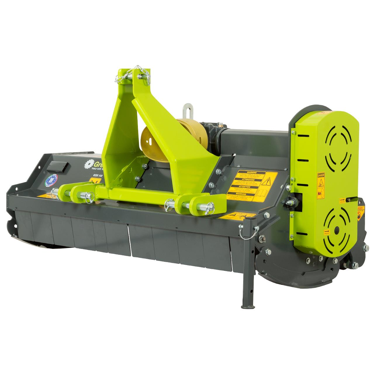 Der Eos 132M das flexible und zuverlässige Greenbase Mulchgerät. Geeignet für Traktoren von 16 bis 70 PS. Serienmäßig Original Comer Guss-Getriebe 540 U/min mit Freilaufür super verarbeitetes und pulverschichtetes lackiertes Gehäuse. variabel für Front und Heckanbau.